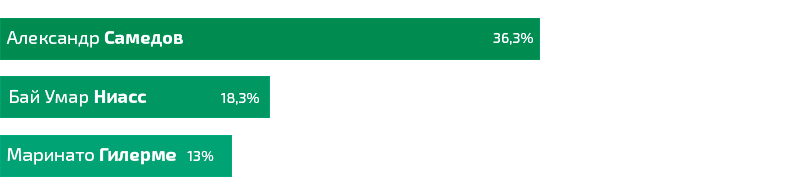 Победу одержал Александр Самедов, набравший 2347 голосов или 36,3 процента.