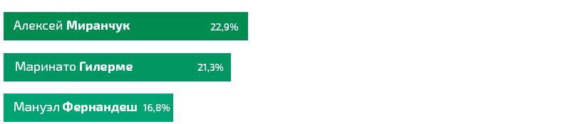 По итогам голосования на нашем официальном сайте и в группе «Вконтакте» победу одержал полузащитник Алексей Миранчук. За Алексея отдали голоса 1170 человек. При этом занявший второй место голкипер Маринато Гилерме уступил Миранчуку всего 82 голоса.